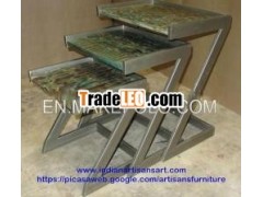 Vintage Industrial look Iron Structure Z Shape Nest Table set of 3with Reclaimed wood top at affordable prices.